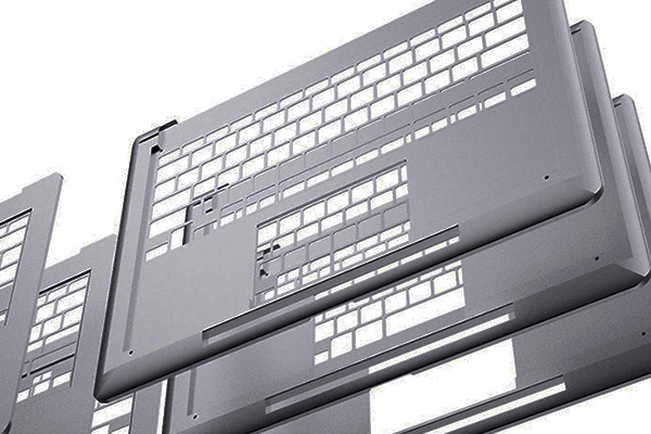 由鋁合金制成的筆記本電腦外殼的厚度為0.8 mm~1.2 mm,而傳統的豎直沖切采用的是垂直于產品配合面的方法,會在外表面留下1.5 mm~2.0 mm的啞光邊緣,這對筆記本電腦的外觀造成了很大的影響。所以,對于這種材料,一般的沖裁方式是不適用的。